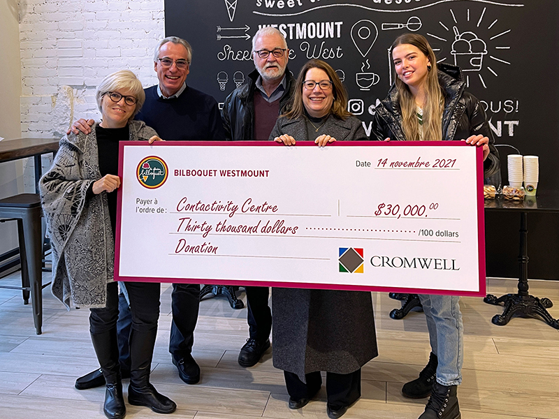 Le propriétaire de Cromwell Management rencontrait deux importants représentants de l’organisme Centre Contactivité afin de leur remettre la totalité des profits de l’été 2021 encaissés par la crèmerie artisanale Le Bilboquet Westmount.