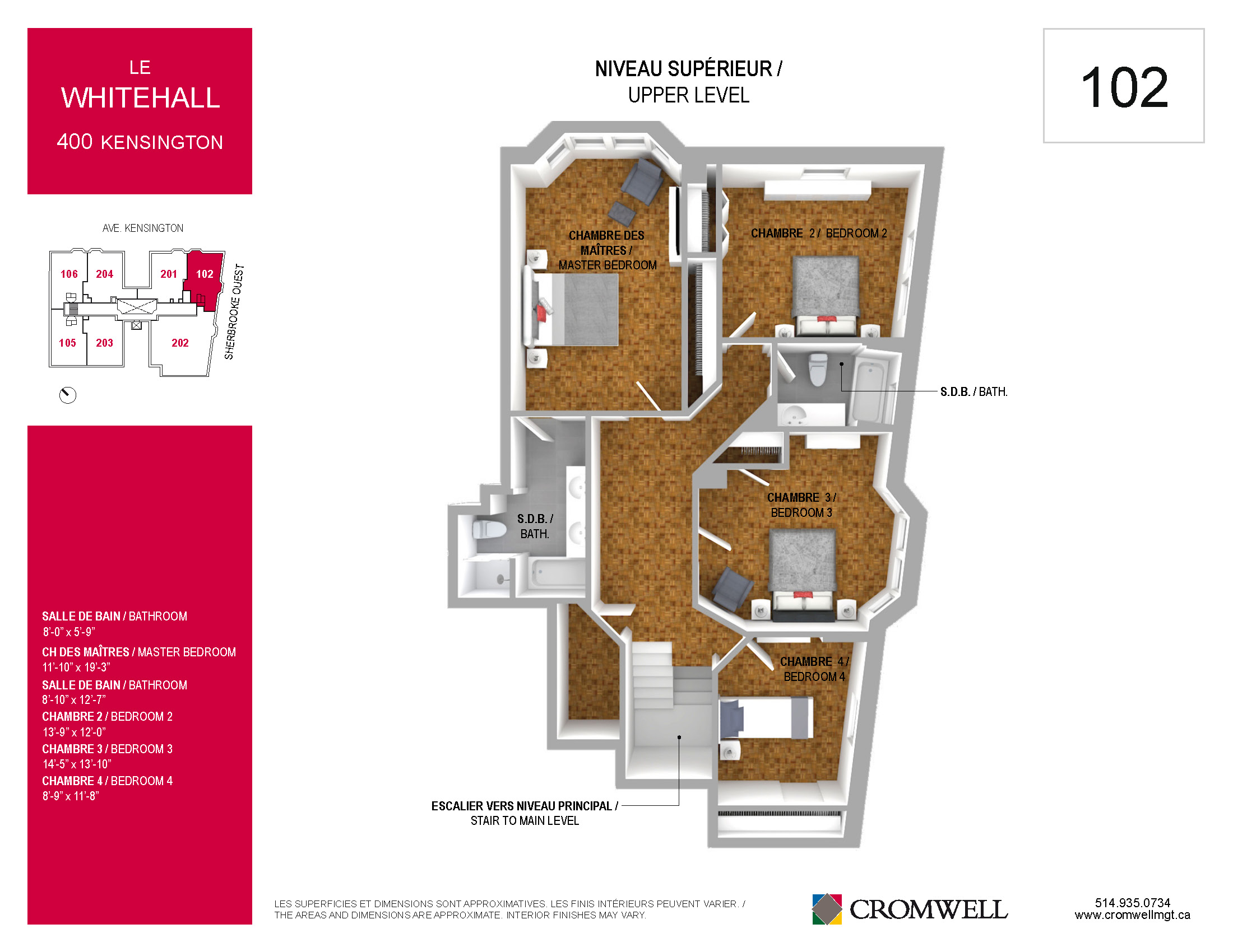 Among the largest apartments offered at Cromwell, this 2-storey suite, which will be available in December at 400 Kensington, includes 4 bedrooms, 2 bathrooms and a powder room.