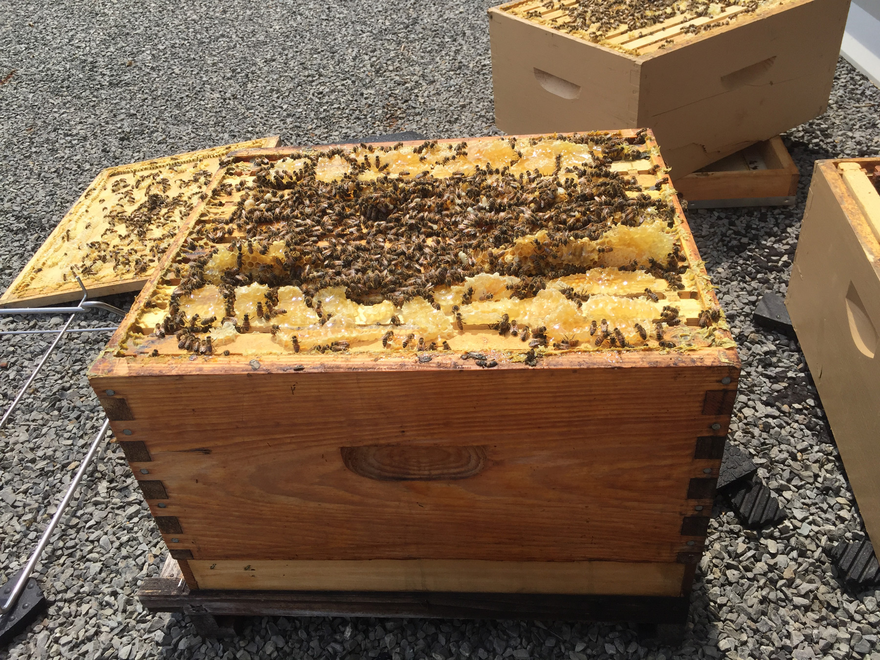Ce sera leur seconde année sur ce site. Les ruches ont presque doublées en taille et en population depuis mai 2018.