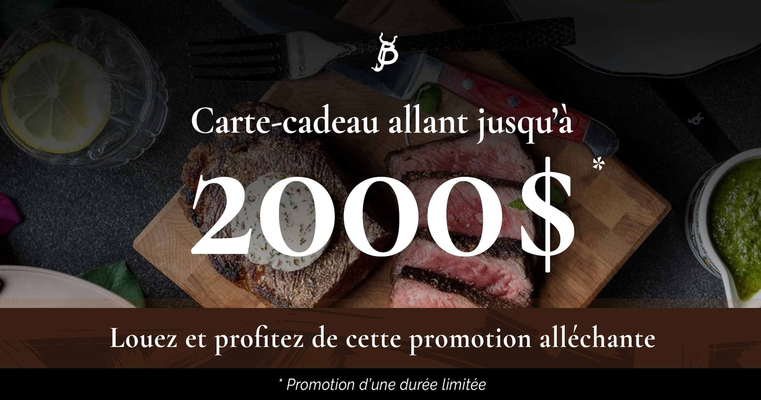 * Promotion d’une durée limitée. La carte peut être utilisée en salle à manger ou à la boucherie Steakout de La Bête.