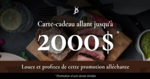 La date de livraison approche à grands pas pour notre nouveau projet locatif à Québec, Le Kelo. Les nouveaux locataires du Kelo recevront une carte-cadeau allant jusqu’à 2000$* chez La Bête steakhouse.